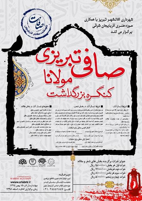 رئیس حوزه هنری آذربایجانشرقی از برگزاری کنگره بزرگداشت «مولانا صافی تبریزی» خبر داد.